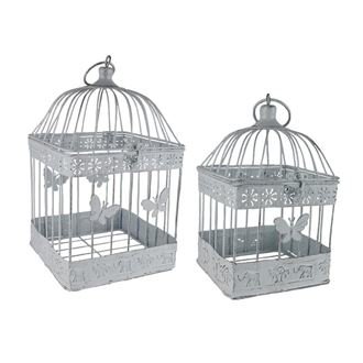 Sada dekoračních kovových klecí.Sada obsahuje 2 klece.Malá klec má rozměry : 18 × 18 cm, výšku 31 cm.Velká klec má rozměry : 13 × 13 cm, výšku 23 cm.Barva : bílá patina.Materiál : klec.