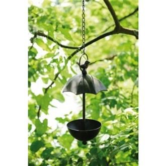Pítko pro ptáčky s dekoračním deštníkem k zavěšení.Rozměry : průměr 19 cm, výška 35 cm.Barva : hnědá.Materiál : kov. číst celé