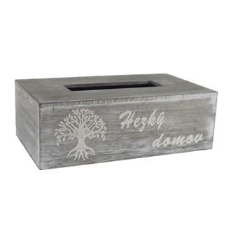 Zásobník na ubrousky.Rozměry : 24 × 14 cm, výška 8 cm.Barva : šedá.Materiál na bázi dřeva. číst celé