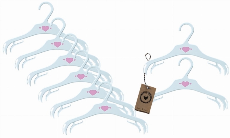 Sada 8 dětských ramínek v bílé barvě se srdíčky.
