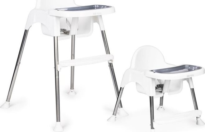 Moderní jídelní židlička 2v1 je vyrobená z kvalitního materiálu. Stolička je vhodná pro děti od 6 měsíců do 36 měsíců. Může být sestavena ve dvou výškách. Výhody židličky:
