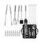 - Sada obsahuje vidličku, špachtli, nůž, kartáč, kleště, špejle na špízy, kukuřičné násady a kartáč na čištění grilu