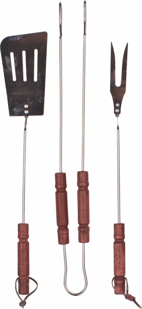 3dílná sada grilovacího náčíní obsahuje kleště, obracečku a vidličku z pochromované oceli. Rukojeť je ze dřeva. Sada obsahuje základní nářadí potřebné při grilování. Nářadí je vybaveno poutky pro zavěšení. Rozměry - délka 46cm, 46,5cm, 44cm. číst celé