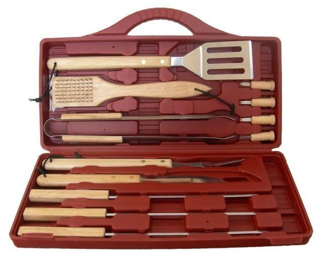Luxusní sada grilovacích příborů vyrobených z nerezové oceli s dřevěnými střenkami, které jsou příjemné na dotyk a výborně padnou do ruky. Všechny nástroje (kromě jehlic a napichovátek) mají poutka na zavěšení například na gril nebo udírnu. Grilovací kleště, vidlička a obracečka, pomocí kterých přímo manipulujete s pokrmy na grilu, mají délku 38 cm. Ta je optimální pro to, aby se s těmito nástroji dobře a přesně pracovalo, ale zároveň aby vás nepálil žár sálající z grilovacího roštu. Sada je zabalena v elegantním pvc pouzdře.