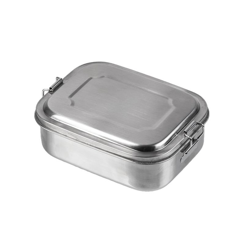 Tento nerezový jídelní box je ideálním pomocníkem do práce, na cesty i do školy. Díky pevné konstrukci z nerezové oceli je odolný vůči poškození a snadno se udržuje v čistotě. Uzavírání pomocí dvou svorek zaručuje bezpečné zavření bez nežádoucího úniku potravin nebo tekutin.