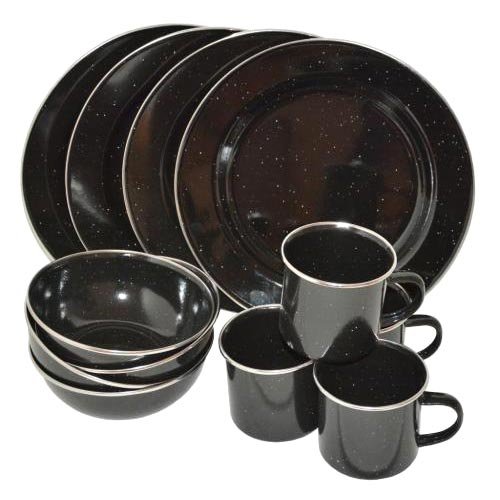 Jídelní sestava ideální pro kempování, cestování a outdoorové aktivity. Smaltované ohnivzdorné. V sadě je 12-kusů nádobí. Jsou to 4 talíře o průměru 26 cm, 4 misky o průměru 16 cm, 4 hrnky průměr 8 cm. číst celé