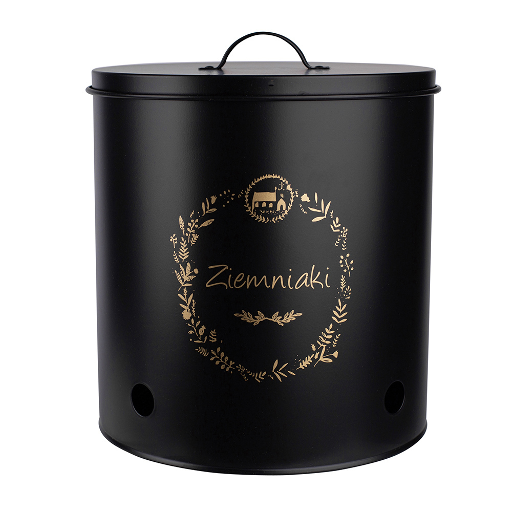 KONTEJNER NA UCHOVÁVÁNÍ BRAMBOR 21.5X23CM ČERNÝ POLSKÉ NÁPISY