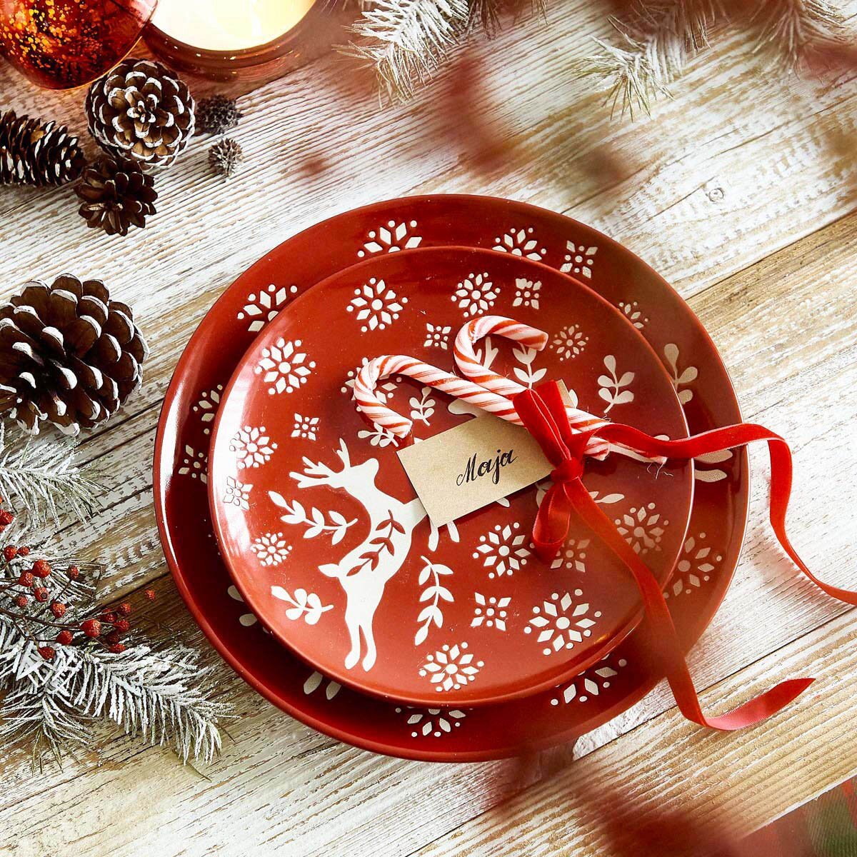 Talíř | AVERO | dezertní talíř červený s jelenem | 21 cm | 870601 Homla