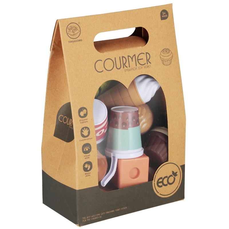 Pochoutky, mají rozměry 16X25X9 cm. Obsah sady je podnos, 2 x makronky, 2 x košíčky, 3 x dortové kousky, 3 x pralinky, 2 x zmrzlina, 2 x nápoj, příbor. Cena je za 1 sadu. Vhodné pro děti 3+. číst celé