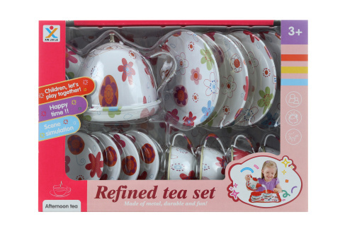 Čajový plechový set s kytičkami. Baleno v krabici. Sada obsahuje konvici, 4 talířky, 4 podšálky a 4 hrnečky. Rozměry balení cca 24x17,5x9,5 cm. Věk 3+ číst celé