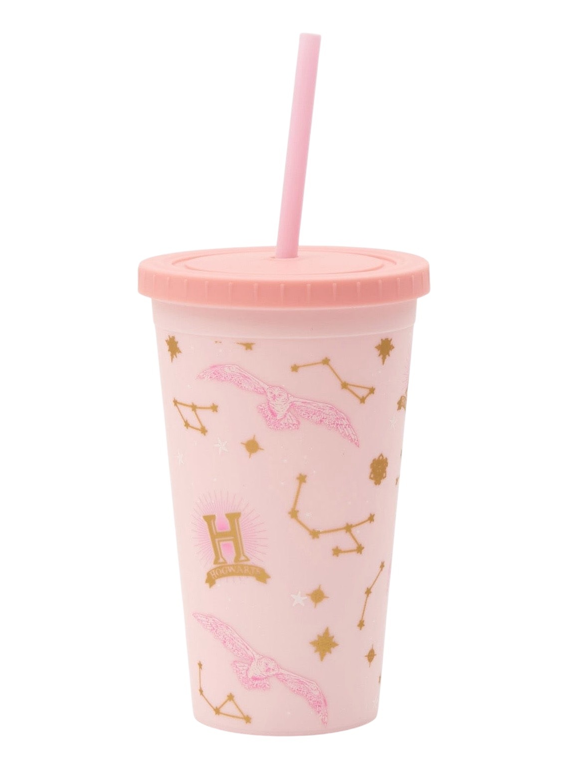 Kelímek s brčkem, růžový s Hedvikou, Harry Potter