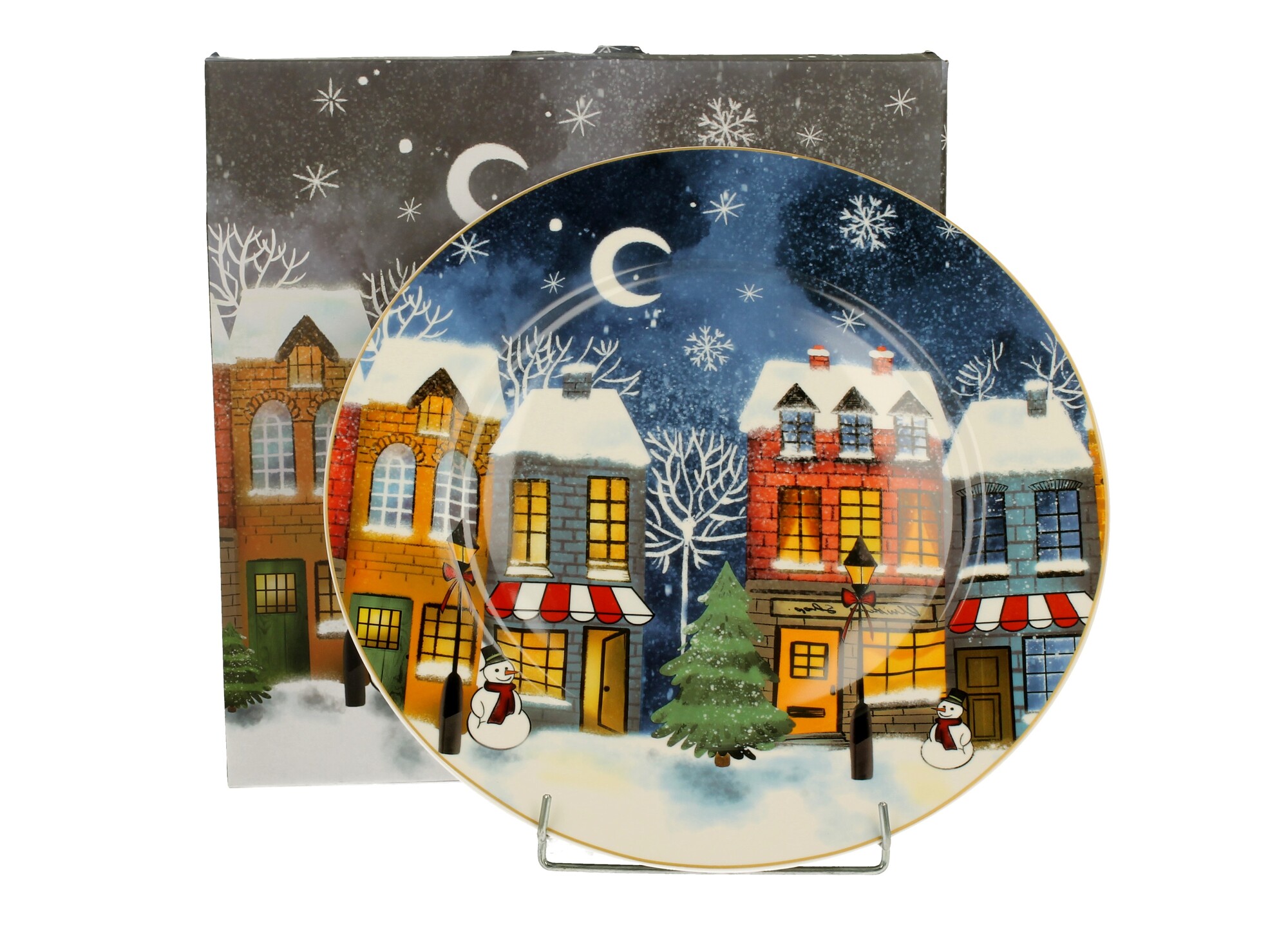 Talerz duży CHRISTMAS CITY wchodzący w skład serii Świątecznej, wykonany z porcelany New Bone China, charakteryzującej się elegancką i naturalną kremowo - białą barwą z delikatnym połyskiem, a także wyjątkową wytrzymałością.