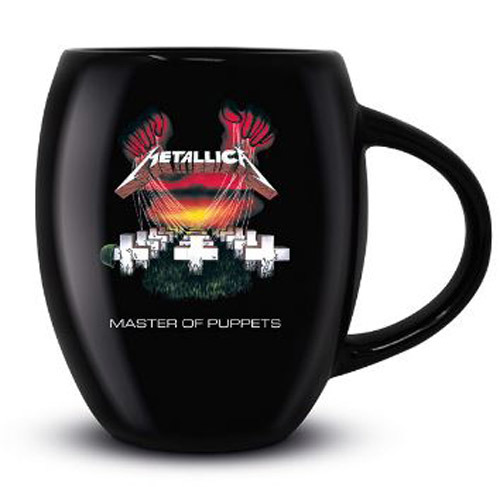 Oficiální hrnek a doplňkové zboží z katalogu produktů s logem, grafikou a znakem americké metalové skupiny Metallica.