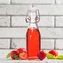 Láhev s klipem. Vhodná pro uchovávání domácí slivovice, likérů, sirupů... nebo naplněná jako dárek přátelům. Materiál: sklo, plast, kov, silikonové těsnění. Rozměry: objem 0,29 l, 5x5x20 cm. Do myčky vhodné pouze sklo. Častým používáním myčky může docházet k šednutí skla.