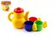 Malá čajová sada obsahuje konvici na čaj a 3 hrníčky. Sada je vyrobena z plastu a v zářivých barvách, které oživí každý čajový dýchánek. Vhodné od 3 let. číst celé