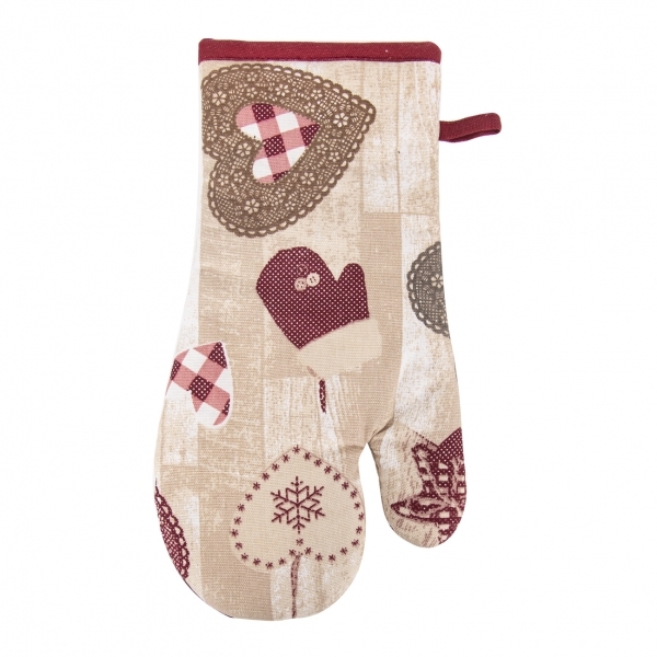 Chňapka kuchyňská s poutkem. Ochrání Vaše ruce při vaření a pečení před popálením. Usnadní manipulaci s horkým nádobím. Možnost zavěšení. Materiál: bavlna. Rozměry: d. 32 cm, š. 18 cm.