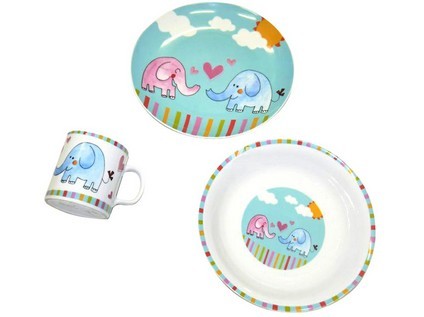 Porcelánový materiál garantuje dlouhou životnost sady a její odolnost vůči pravidelnému používání. Veselý motiv slona navíc ozvláštní každý dětský stůl a dodá stolování hravý nádech, který děti jistě potěší.
