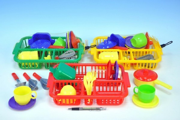 Nádobí s odkapávačem asst 3 barvy v síťce