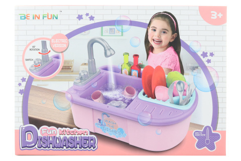 Plastový dřez na baterie, ty slouží k pohonu motorku, který čerpá vodu z nádobky. Voda pak vyteče kohoutkem do dřezu. Napájení na 3 AA baterie (nejsou součástí). Rozměr dřezu cca 40 x 28 x 30 cm. Rozměr balení cca 40,5 x 29 x 15 cm. Věk 3+