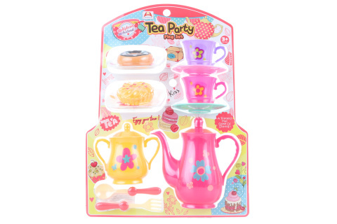 Plastový čajový servis obsahuje konvici, cukřenku, dva šálky s podšálky, dva tácky se zákusky, vidličku a lžičku. Rozměr balení cca 36 x 27,5 x 9 cm. Věk 3+ číst celé