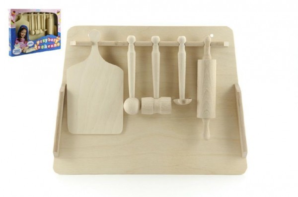 Kuchyňské nádobí prkénko, váleček, palička dřevo v krabici 40x30x4,5cm