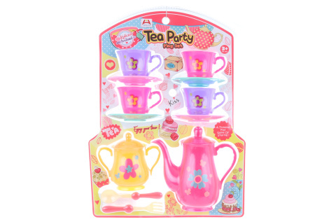 Plastový čajový servis obsahuje konvici, cukřenku, čtyři šálky s podšálky, vidličku a lžičku. Rozměr balení cca 36 x 27,5 x 9 cm. Věk 3+