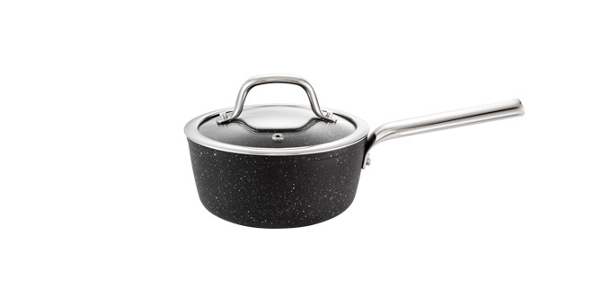 Luxusní nádobí s prvotřídním antiadhezním povlakem vhodným pro kovové kuchyňské nářadí. Pokrmy se na nepřilnavém povrchu s charakterem neleštěného přírodního kamene nepřipalují, vaření je rychlé a rovnoměrné. Masivní sklonerezová poklice s otvorem pro páru, vodotěsné nerezové úchyty a indukční dno. Vhodné pro všechny typy sporáků a pečicích trub (s poklicí max. 200 °C). Vhodné do myčky. 5 roků záruka.