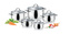 Kuchyňské nádobí se sklonerezovými poklicemi, masivními vodotěsnými úchyty, třívrstvým sendvičovým dnem a odměřovací stupnicí v každé nádobě. Vyrobeno z prvotřídní nerezavějící oceli 18/10, vhodné pro všechny typy sporáků - plynové, elektrické, sklokeramické a indukční, vhodné do myčky. 5 roků záruka.