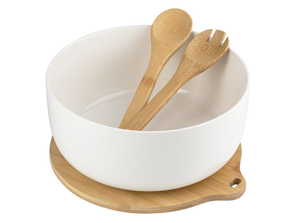 SALÁTOVÁ MÍSA NA BAMBUSOVÉM PODKLADU S LŽÍČKAMI, MATERIÁL: KERAMIKA, ROZMĚRY: MISKA-25X25X11,3; PODLOŽKA-17,3X15X1 DOPORUČENÉ RUČNÍ MYTÍ číst celé