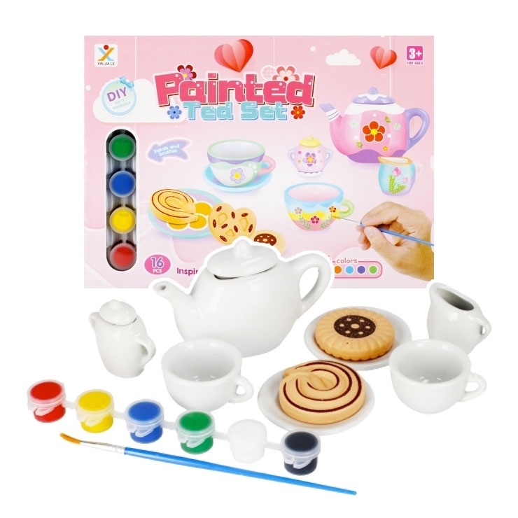 Barevná keramická souprava na malování. Všechny děti milují hry, ve kterých mohou projevit svoji kreativitu. Díky sadě kuchyňského nádobí na malování může každé dítě prezentovat svůj malířský talent! Souprava se skládá až ze 16 prvků, rozvíjí kreativitu dítěte, umožní dítěti hrát si na dospělý život a provádět základní činnosti v domácnosti, jako je příprava kávy, čaje. Taková bohatá výbava nádherného nádobí dokáže proměnit zábavu ve skutečné příjemné setkání u čaje či kávy a lákadlem navíc je, že si jej můžete natřít do jakéhokoli designu, který si vyberete!
