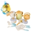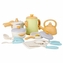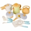 Obsah sady: konvice, prkénko na krájení + nůž, tlakový hrnec, kotlík s píšťalkou, hrnec s poklicí, pánev s poklicí, míchaná vejce, nůž na pizzu, 2x podběrák, 1x síťka na těstoviny, 1x naběračka. Vše je vyrobeno z plastu.