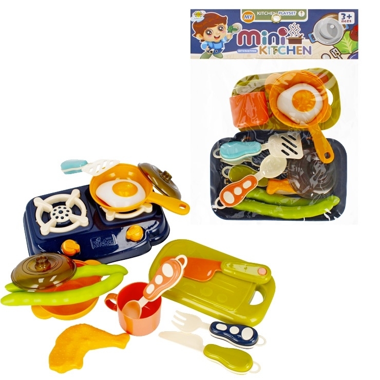 Souprava s vařičem a potravinami bude perfektním doplňkem každé dětské kuchyňky! Obsah soupravy: vařič se dvěma hořáky, prkénko na krájení plus nůž, pánev s poklicí, hrnec s poklicí, míchaná vejce, sklenice, maso, 2x zelená fazolka, nůž, lžička, 2x podběrák. Rozměry 24x32x7 Výrobek je určen pro...