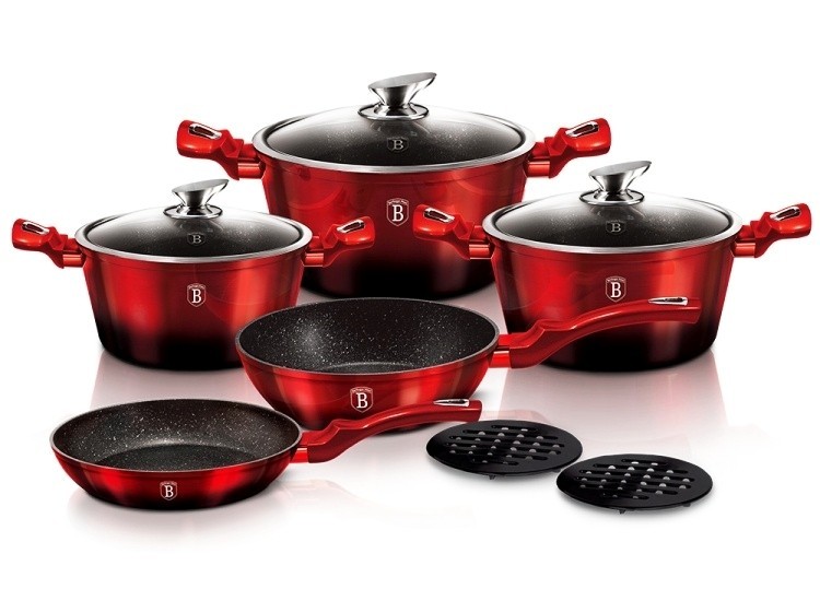 BERLINGERHAUS Sada nádobí s mramorovým povrchem 10 ks Black Burgundy Metallic Line BH-1631