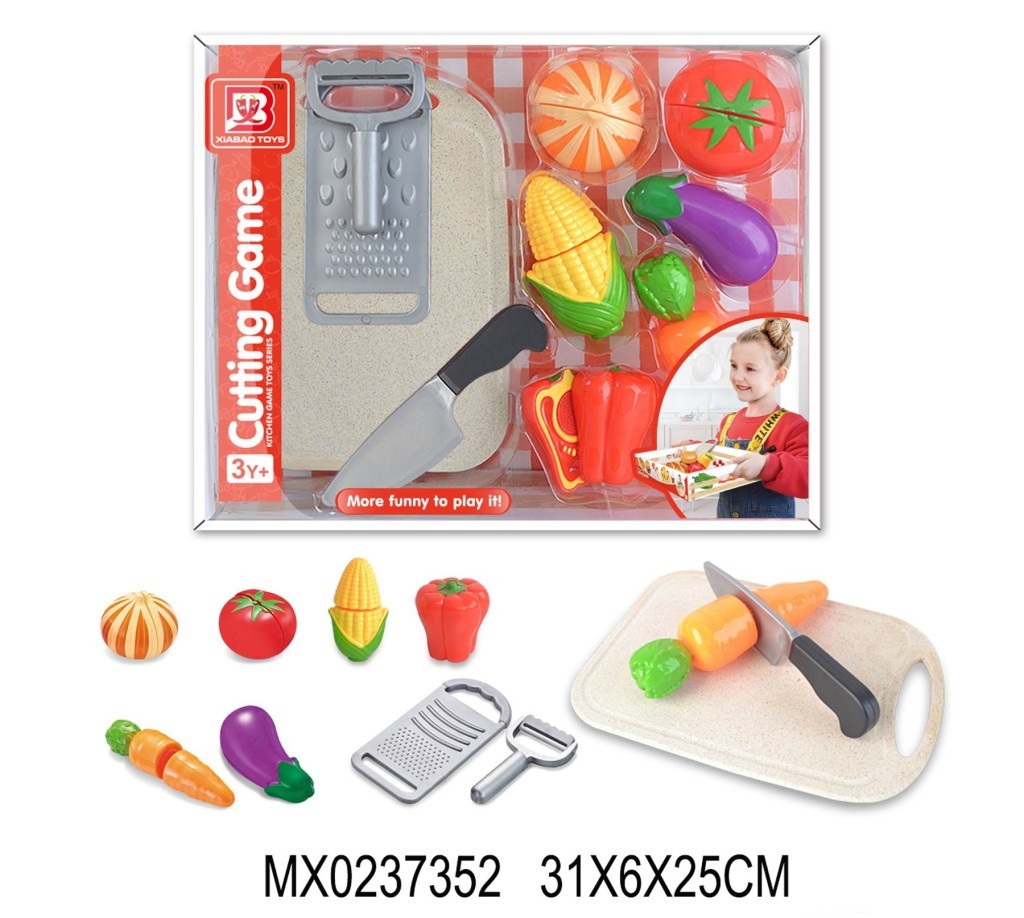 Zelenina je vyrobena z kvalitního a odolného plastu. Každá zelenina se skládá ze dvou částí spojených pomoci suchého zipu. Pomocí bezpečného plastového nože se Vaše děti naučí rozkrojit zeleninu a zároveň tak rozvíjí manuální dovednosti.