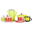 Obsah sady: konvička, konvička na mléko, 4x šálek, 4x podšálek. Celé je to z plastu.
