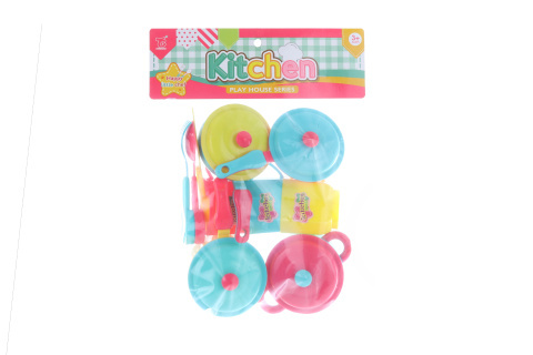 Balení obsahuje 2 pánvičky, 2 hrnce, 3 kelímky, vidličku, nůž a lžíci. Rozměr balení cca 28 x 21 x 5 cm. Věk 3+