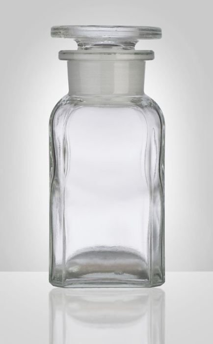 dóza-prachovnice 100ml-čtv.čirá, zabr.víko, sklo