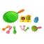 Kuchyňská sada. V plastové pánvi s rukojetí jsou další doplňky na vaření: dvojplotna, plynová bomba, čajník, malá pánvička s poklicí, 2 obracečky, 2 naběračky a habarka. Rozměry jsou 31 x 6,5 x 9,5 cm. Nevhodné pro děti do 3 let. číst celé