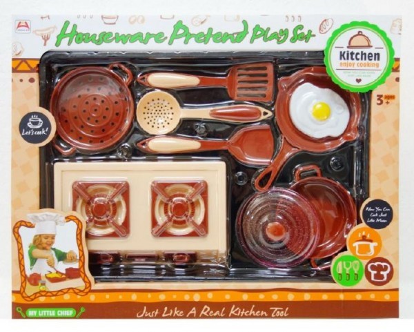 Sada nádobí s vařičem a doplňky plast v krabici 42x33x5cm