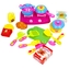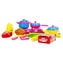 Košík s nákupem, obsah soupravy je nákupní košík, sporák se dvěma hořáky, prkénko na krájení, tlakový hrnec, hrnec s poklicí, pánev s poklicí, kuřecí maso, paprika v láhvi, hranolky, sada příborů, naběračka, lžíce na těstoviny, lžíce, rajčata v krabici, pepř v krabici. Rozměry produktu jsou 18x30x28cm. Hračka je určena pro děti ve věku 3+.