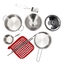 Set do kuchyně, obsah soupravy je 1x hrnec s rukojetí, 1x utěrka, 2x hrnec, 1x poklice, 1x mísa, 1x naběračka, 1x sada. paličky. Rozměry balení jsou 21x34x5cm. hmotnost produktu bez obalu [kg]: Výrobek je určen pro děti ve věku: 3+. číst celé