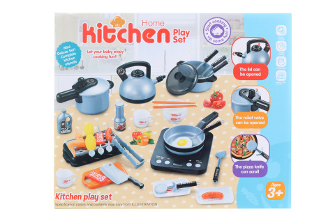Tato rozsáhlá sada nádobí přináší zábavu a vzdělávání v jednom. Vyrobena z odolného plastu, obsahuje vše důležité pro hraní na vaření - od vařiče na baterie s realistickými zvuky a světlem po různorodé příslušenství jako konvice, pánev, hrnec, tlakový hrnec, gril a přes 30 dalších dílů včetně kleští a potravin. Vařič funguje na 3 baterie typu AA, které nejsou součástí balení, a disponuje i časovačem pro nastavení délky „vaření“.