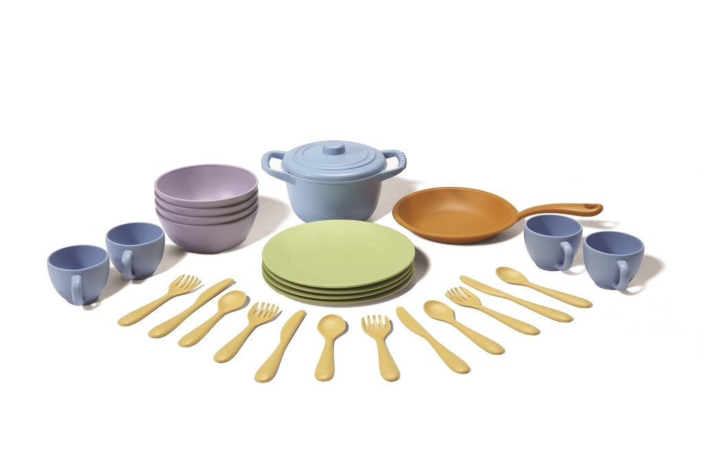 Pokud hledáte plastové hračky na písek nebo do vody a při tom vám velmi záleží na bezpečnosti vašich dětí, nabízíme vám americkou značku ekologických hraček Green Toys, která je populární nejen v Americe, ale se svými výrobky sklízí neuvěřitelné úspěchy po celém světě. Green Toys, to je především odpovědná výroba hraček z recyklovaného plastu láhví od mléka. S nejzelenější sadou nádobí na světě mohou mladí kuchaři vymýšlet a podávat pomyslné kulinářské pochoutky, které mají skutečný přínos pro Zemi. Skvělé pro podporu kreativního a nápaditého hraní. Je zaručená zelená zábava na několik hodin. Možno mýt v myčce. Hlavní vlastnosti: bezpečný materiál pro děti, který neobsahuje PVC, bisfenol ani ftalátyvyroben z recyklovaného plastu láhví od mlékapevný a hladký materiáloriginální designobal je 100% ekologický a recyklovatelný