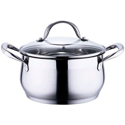 -Indukční nádobí Bergner-materiál: nerezová ocel 18/10, tloušťka 0,6 mm-stříbrná barva-celonerezové držadla-rozměry: průměr 20 x 11,5 cm, objem 3,3 L-sendvičové dno-skleněná poklice