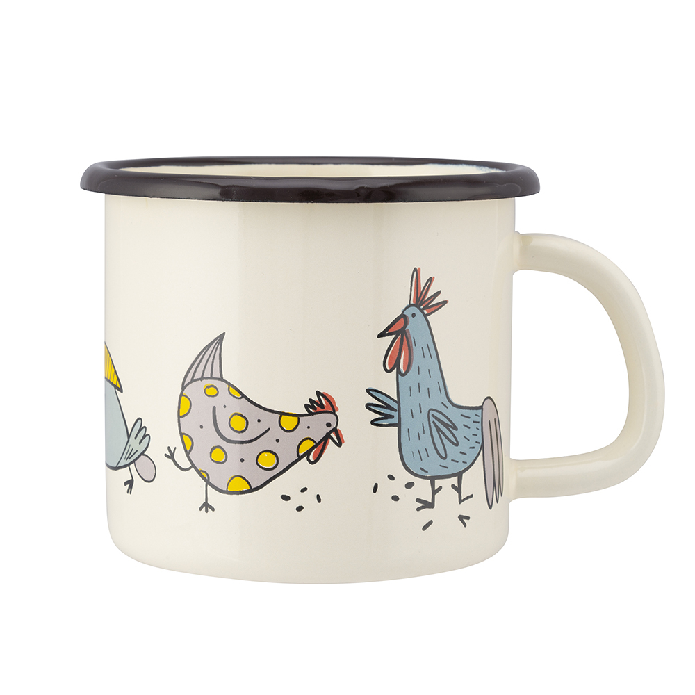 HRNEK SMALTOVANÝ 0.45L PRŮMĚR 9CM VÝŠKA 9CM VESELÉ SLEPIČKY