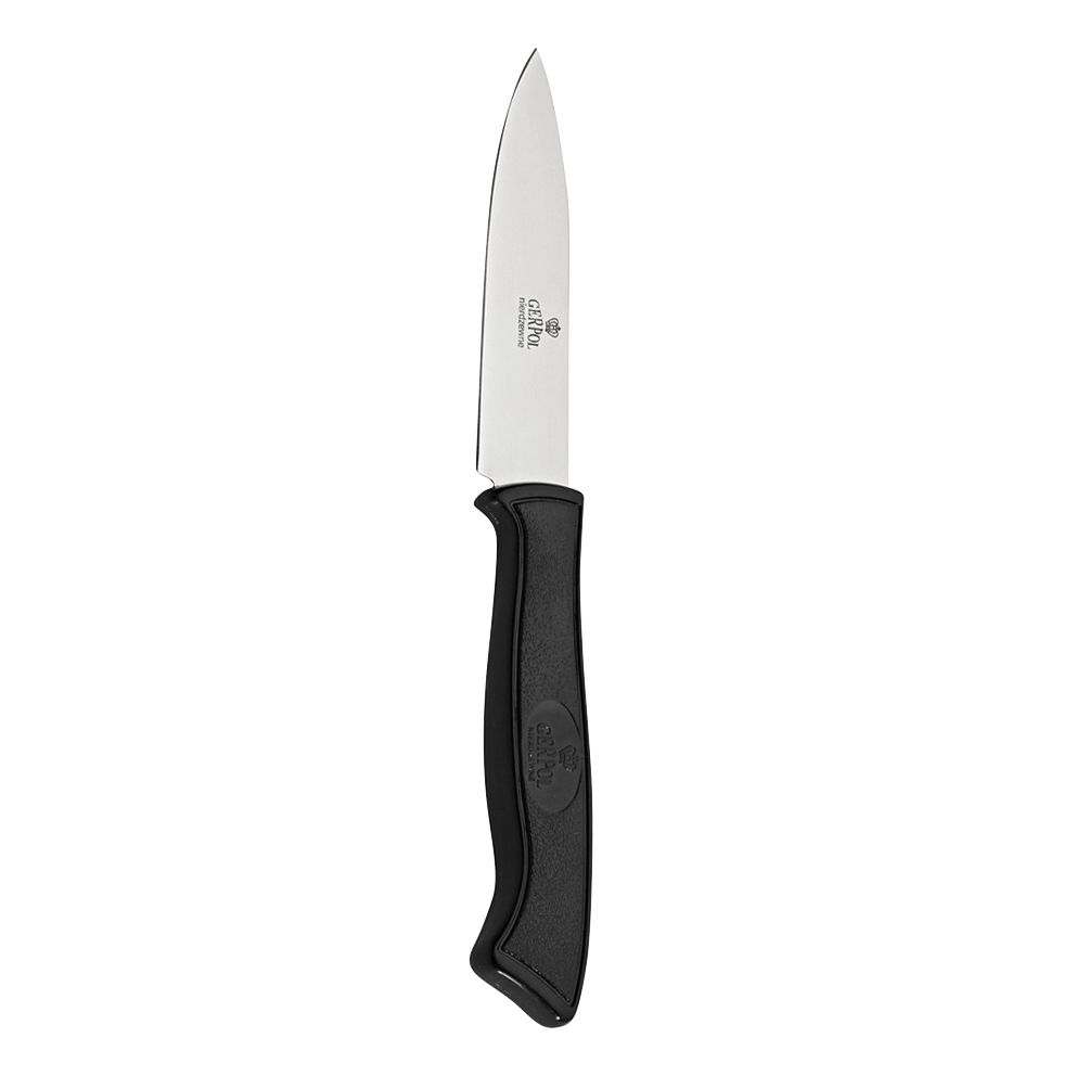 Linia noży Onyks spełnia najwyższe wymagania zarówno pod względem jakości, użyteczności jak również nowoczesnego wzornictwa. Ostrze wykonano z wysokogatunkowej stali nierdzewnej, która zapewnia doskonałe właściwości tnące oraz odporność na wykruszanie i pękanie. Nowatorski, idealnie wyprofilowany kształt rękojeści, to autorski pomysł polskich projektantów. Podparcie ostrza przy rękojeści, gwarantuje doskonałą równowagę oraz ochronę dla palców. Szeroki wybór noży, pozwoli na indywidualne skomponowanie wyposażenia kuchennego. Rękojeść wykonana z materiału ABS gwarantuje bezpieczny i pewny chwyt. Niewielki nóż 8cm będzie idealny do skrobania i krojenia drobnych warzyw.