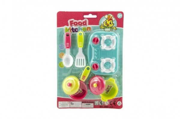 Sada nádobí + vařič 12,5x9cm plast 7ks 3 barvy na kartě 19x28x3cm