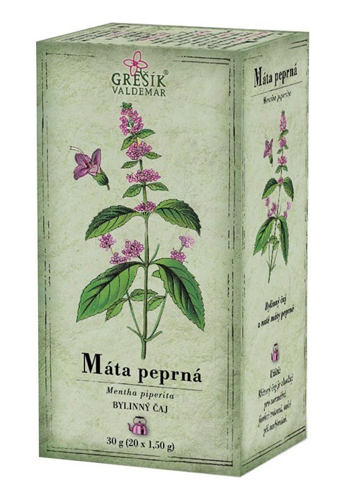 Grešík Máta peprná je bylinný čaj připravený z kvalitní natě máty peprné, známé pro své příznivé účinky na trávicí systém. Tento čaj je skvělou volbou při potížích s nadýmáním a je ideální pro podporu normální funkce trávení. Jeho svěží aroma a příjemná chuť osvěží každou chvilku, kdy si chcete odpočinout a dopřát si něco zdravého.