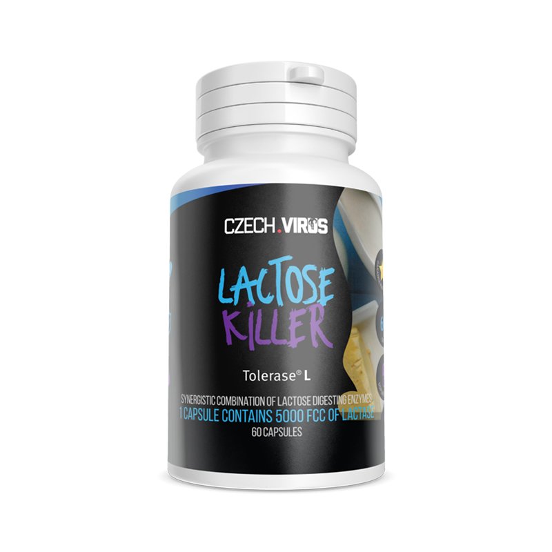Lactose Killer nabízí synergickou kombinaci enzymů, které jsou ideální pro lidi, kteří mají potíže s trávením laktózy. Obsahuje přírodní enzymy laktázu (Tolerase® L) a lipázu, které pomáhají rozkládat laktózu a tuk v mléce, aby se snížila nebo úplně eliminovala nevolnost, nadýmání a průjem způsobené nestrávenou laktózou. Použití tohoto doplňku stravy může pomoci těm, kteří se cítí nepohodlně po konzumaci mléčných výrobků, aby se znovu mohli cítit pohodlně při konzumaci svých oblíbených potravin bez nepříjemných vedlejších účinků. Přírodní enzymy jsou šetrné k trávicímu systému a mohou být snadno začleněny do vaší každodenní stravy. Tento doplněk stravy je vhodný pro lidi, kteří hledají přirozenou alternativu k lékům na trávení. Je snadno použitelný a může být konzumován před jídlem, aby pomohl při trávení laktózy a tuků v mléce.