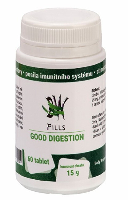 BW Pills Good Digestion (dobré trávení) působí blahodárně na funkce trávicí soustavy a na její udržování v normálním stavu. Blahodárně působí na trávení, nadýmání a podporuje imunitu.